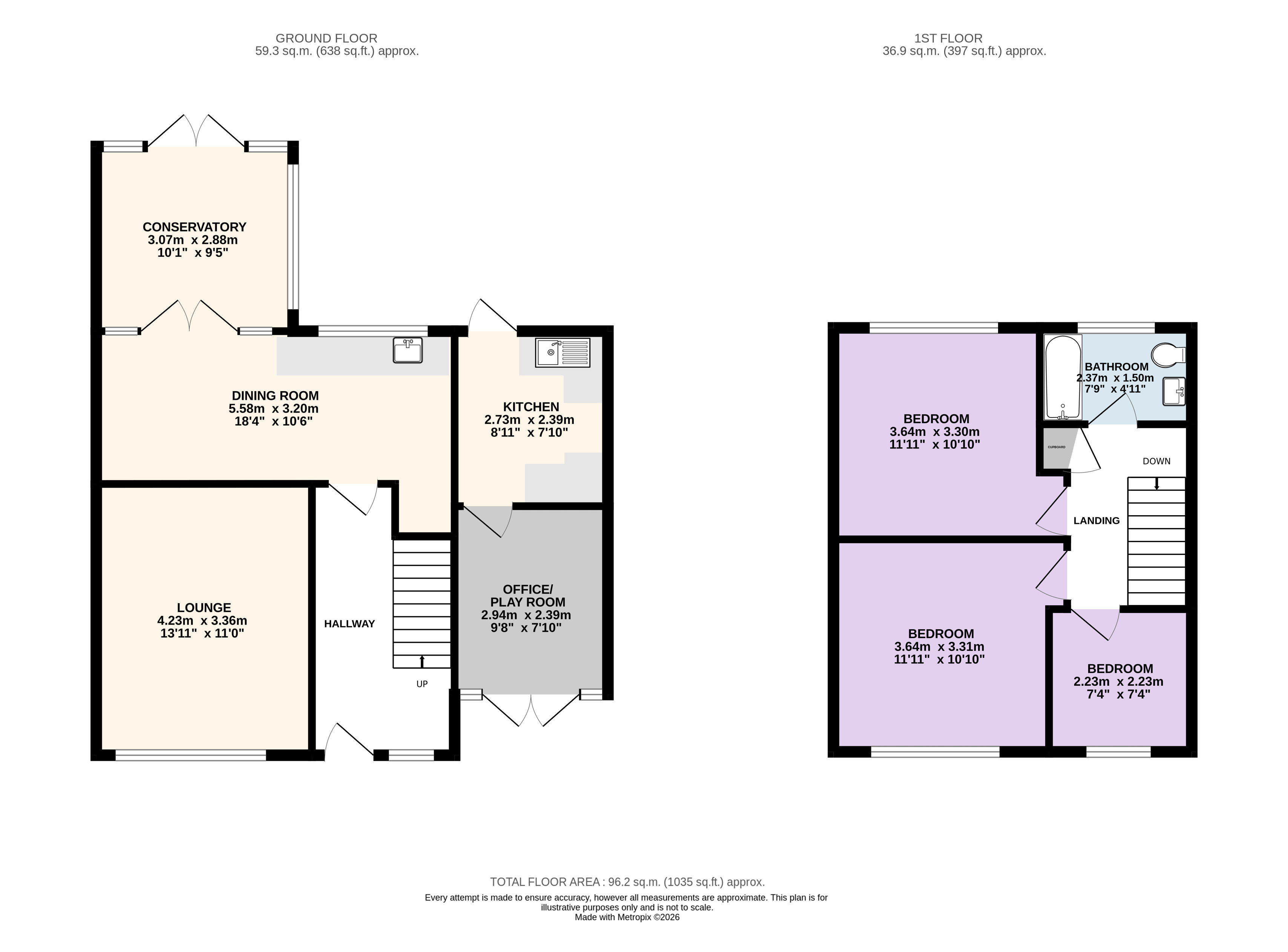Upstairs, there are three bedrooms, each designed to offer comfort and tranquillity. The family bathroom is finished in a contemporary style, featuring a modern three-piece suite and sleek detailing.