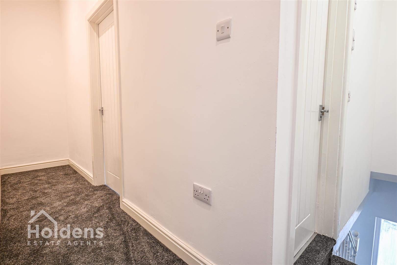Loft hatch, recessed spotlights, entrances into two bedrooms and family bathroom.