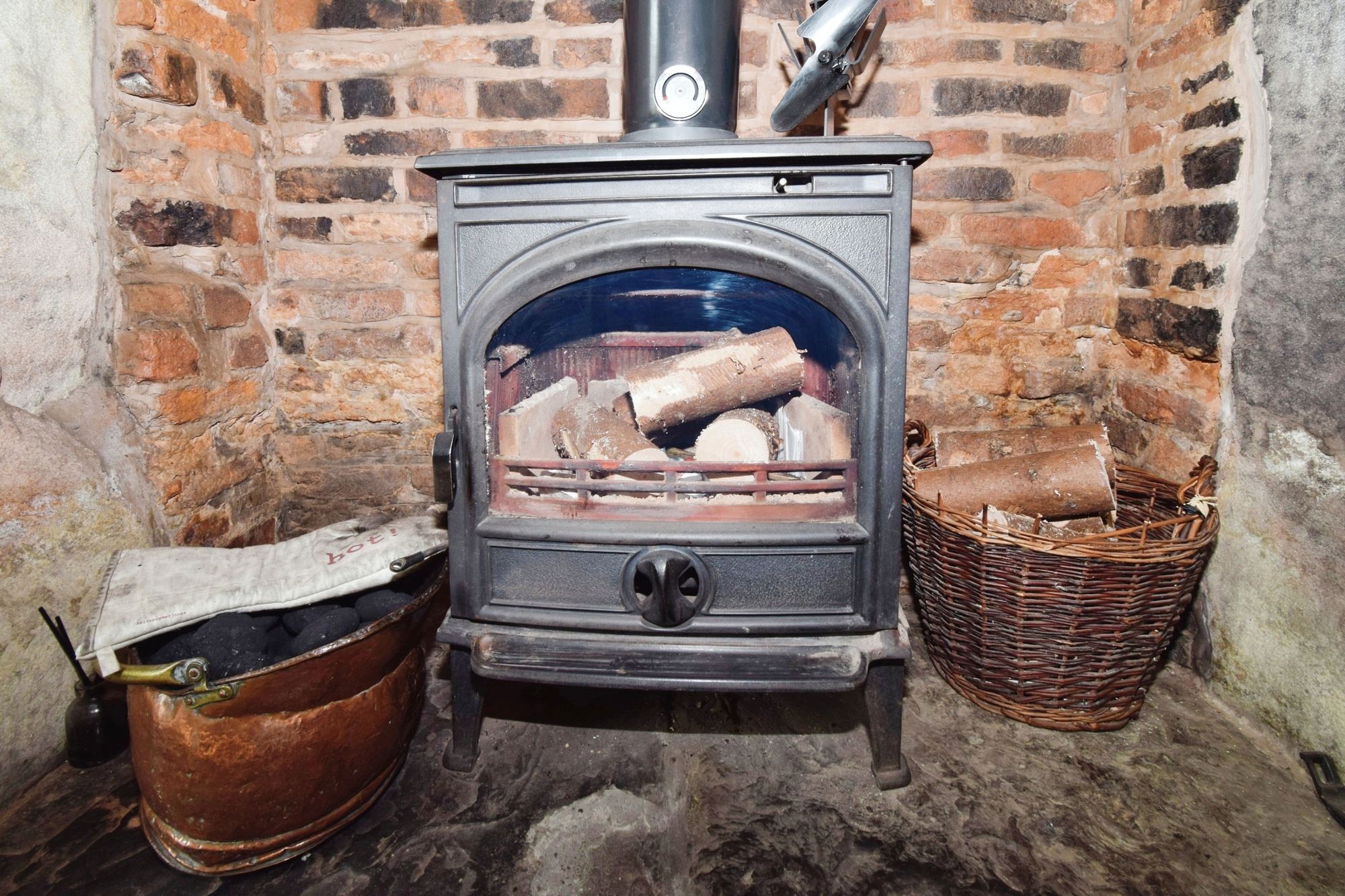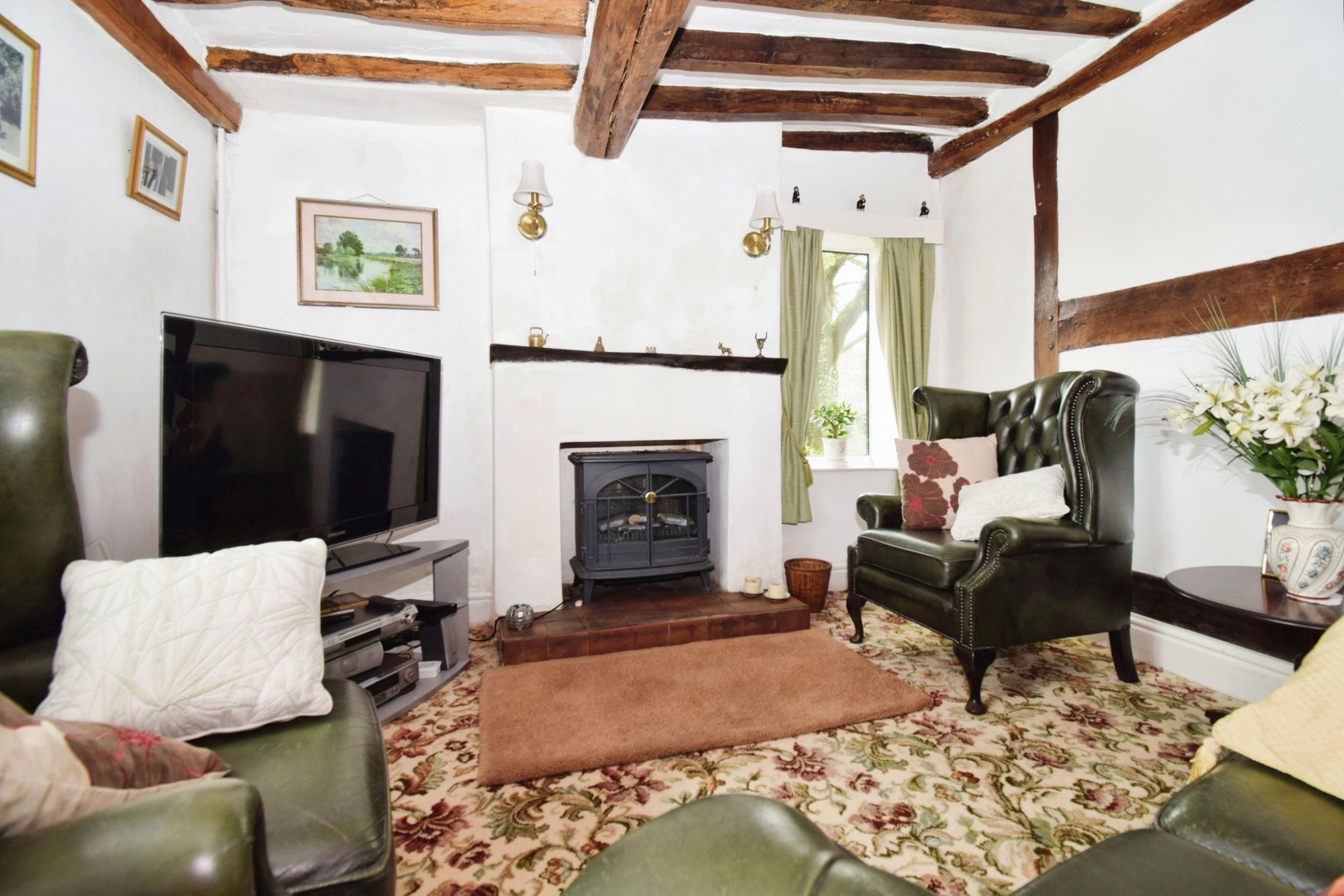 uPVC double glazed windows to font, uPVC double glazed window to side, wooden beams, radiator, electric wood burner.