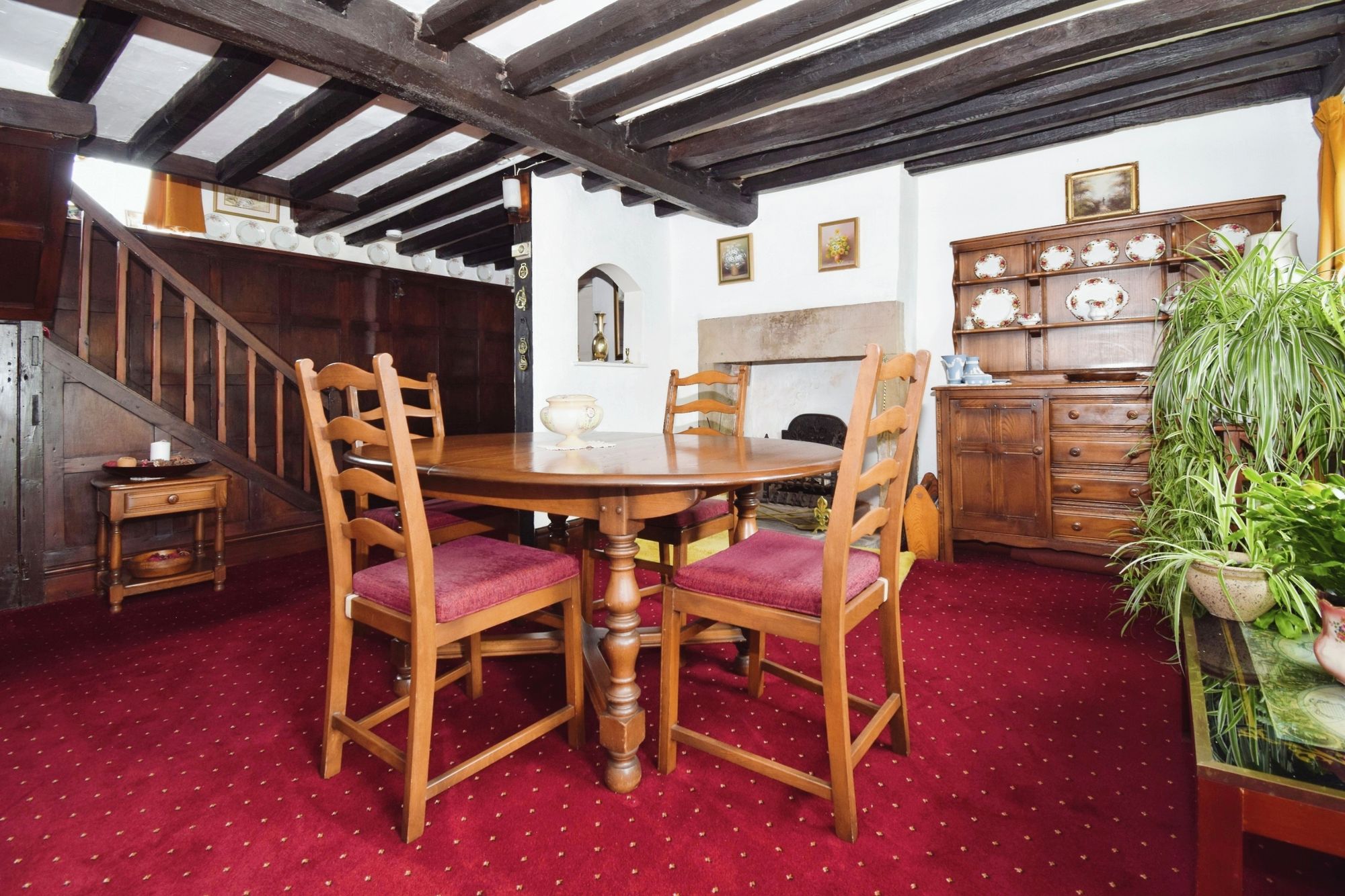 uPVC double glazed windows to front, two radiators, wood burner, large stone fireplace, feature wooden beam, door to kitchen, door to hallway/dining room.