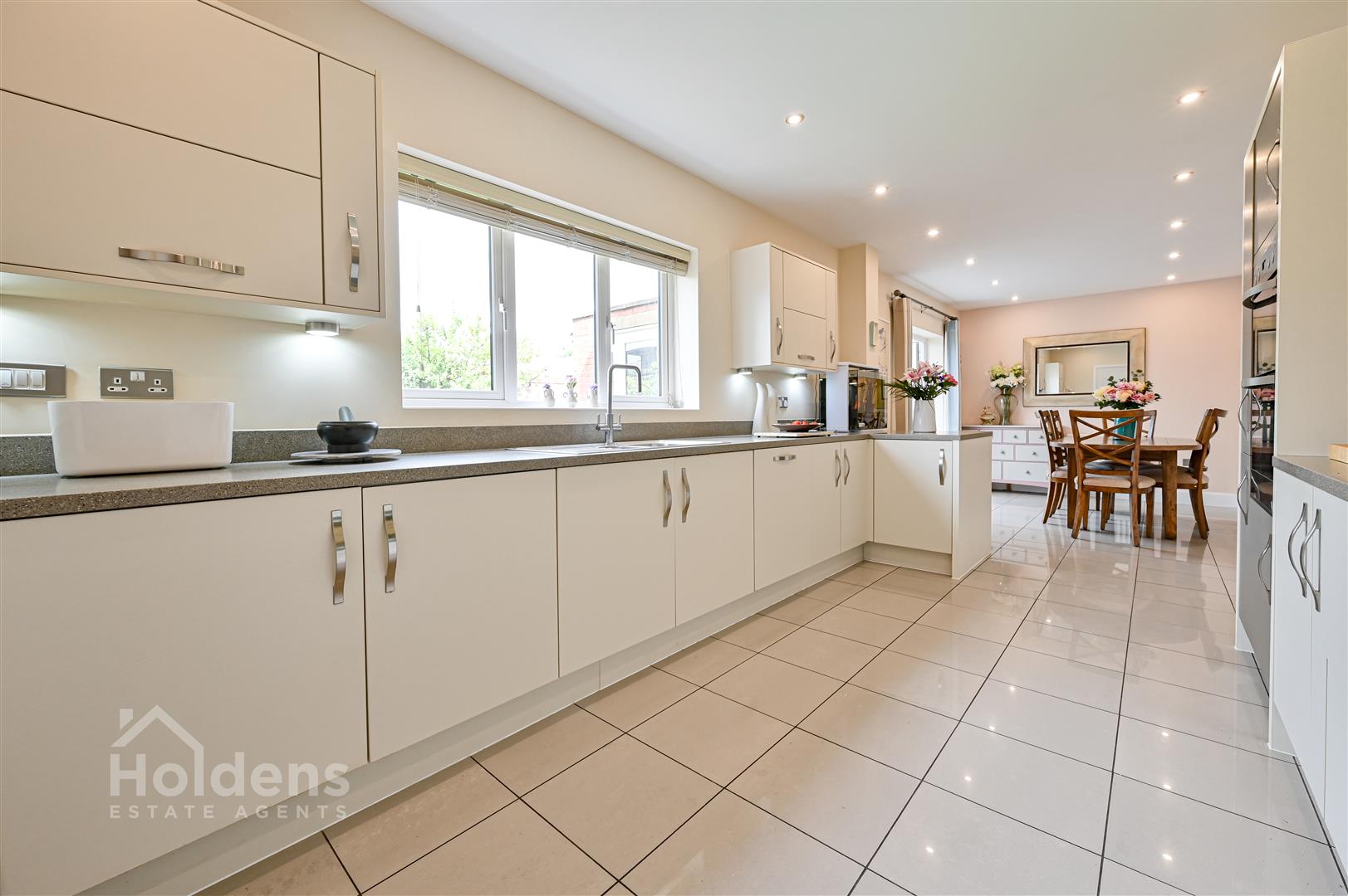 Step inside to a bright and airy entrance hall that sets the tone for the rest of the home. The spacious living room offers a perfect space to unwind or entertain, while the heart of the home is the impressive open-plan kitchen and dining area. Finished to a high specification with Corian work surfaces, this space is ideal for both everyday family life and hosting guests. Flowing effortlessly from the kitchen, the orangery offers a peaceful, light-filled retreat with views over the private rear garden.