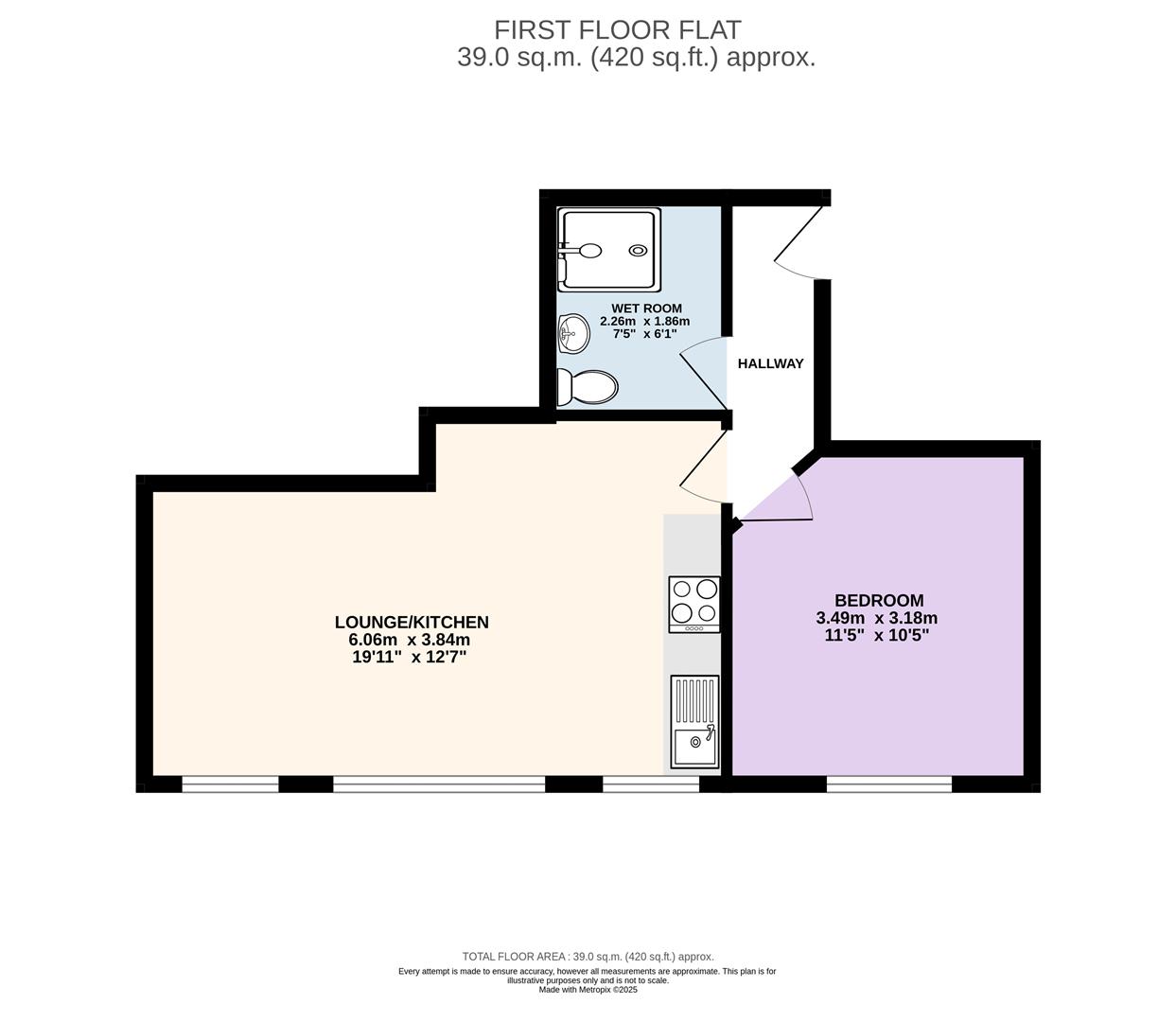 The apartment features a bright and spacious open-plan living room and kitchen, a practical wet room, and a generous single bedroom. Benefitting from gas central heating and UPVC windows throughout, the property is both energy-efficient and easy to maintain. Council Tax Band A, EPC Rating D.